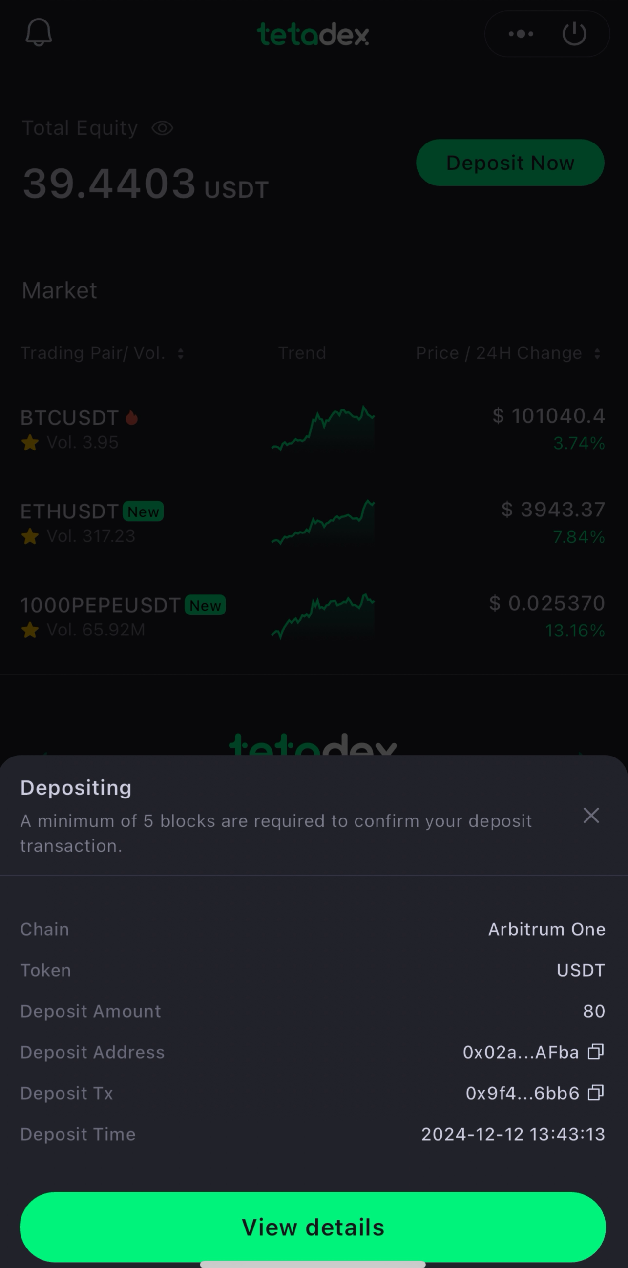 Once connected, tap the Deposit Now button again to initiate your deposit.